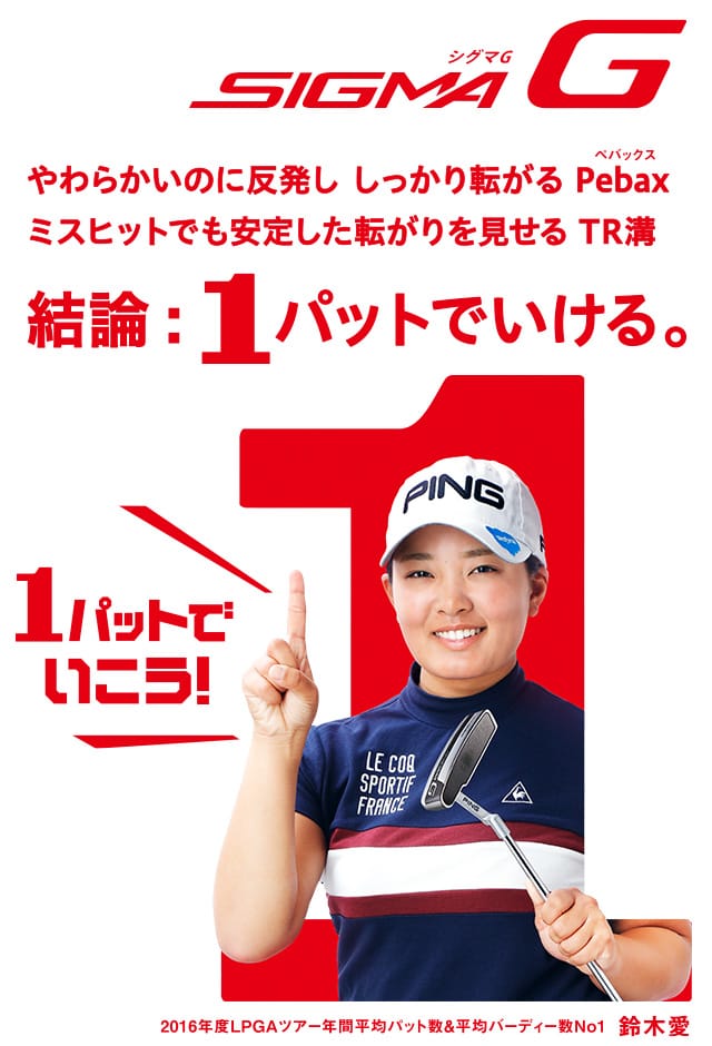 PING独自のテクノロジーで開発されたTR溝。中央の溝を深く、周辺部を浅く、打点によって溝の深さを調整することでボール初速が約50%も安定。その結果、転がる距離・方向性が大きく安定し、カップに近づきます。TR溝搭載パターだから、3パットを減少させ、スコアアップに貢献します。(当社調べ)