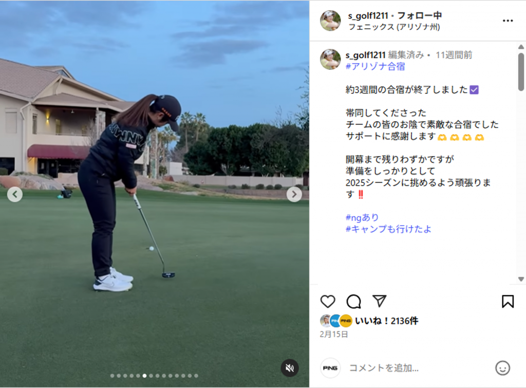 開幕前、佐久間選手はPING本社がある米アリゾナ州フェニックスで強化合宿を実施。そこではクラブスピードの強化に加えて、ショートゲーム、特にパッティングに多くの時間を費やしました。