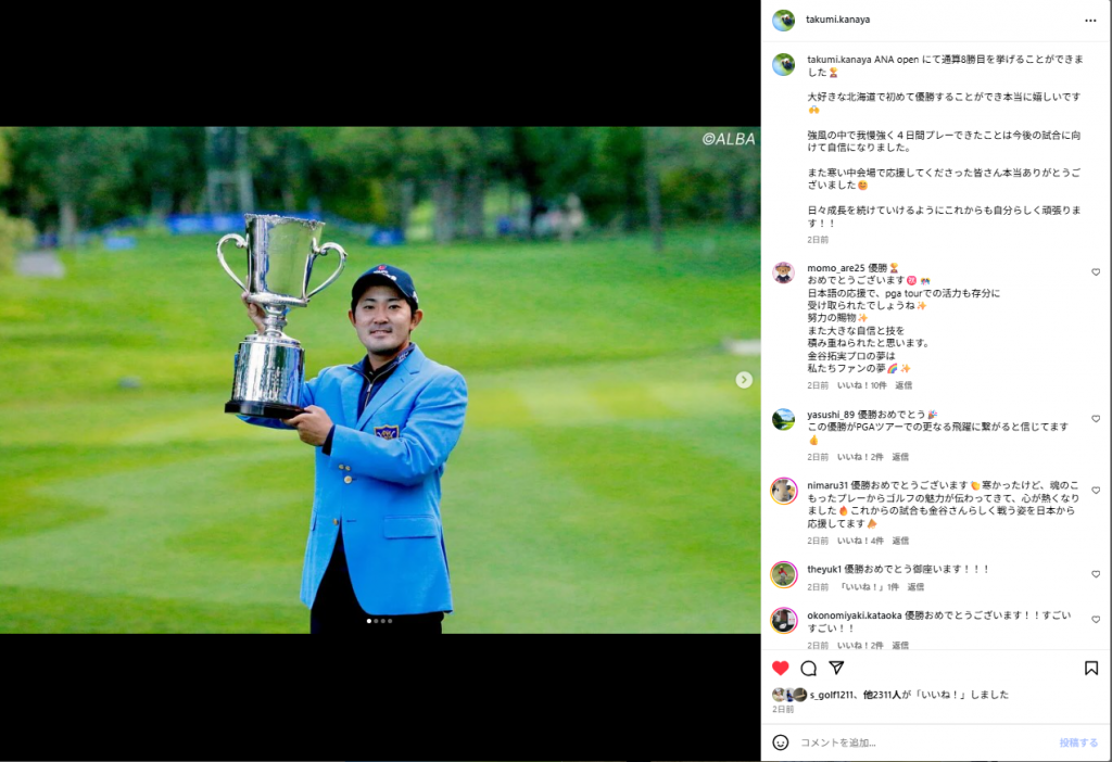 金谷拓実選手がANAオープンゴルフトーナメント(以下、ANAオープン)のプレーオフを制し、堂々の優勝を果たした。