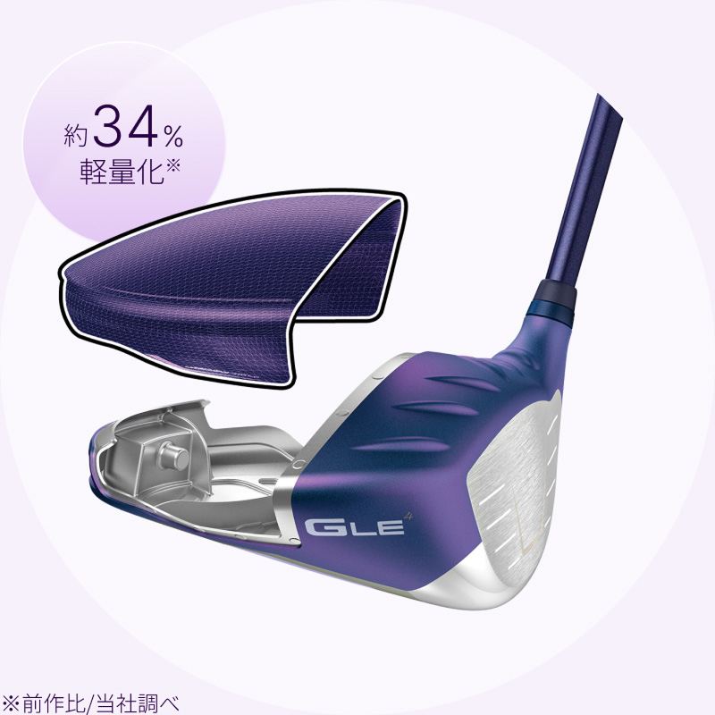 ヘッド後方に「新・高比重ウェイト」を配置したG LEシリーズ史上最高MOIヘッド。前作比でMOIが15%UP(当社調べ)し、ミスヒットに強くブレない飛びを見せる。