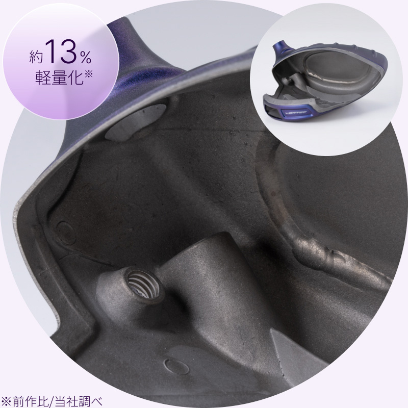 インパクト時の振動を抑えるために、ヘッド内部のソールとクラウン部分にリブを搭載。心地よい打音と打感を実現。