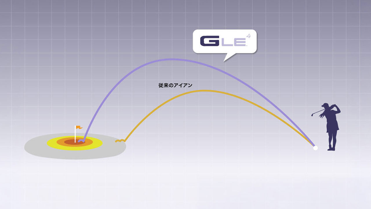 前作よりも深く低く重心を下げたレディースのための「飛び重心」設計。魔法のようにボールが上がり、ピンを狙えるアイアン。
