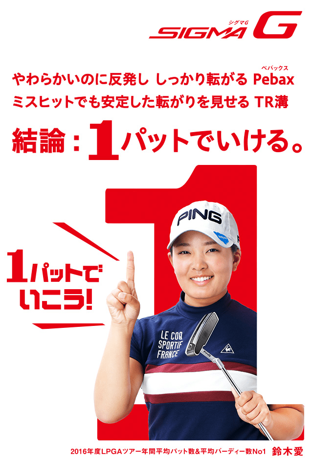 PING独自のテクノロジーで開発されたTR溝。中央の溝を深く、周辺部を浅く、打点によって溝の深さを調整することでボール初速が約50%も安定。その結果、転がる距離・方向性が大きく安定し、カップに近づきます。TR溝搭載パターだから、3パットを減少させ、スコアアップに貢献します。(当社調べ)