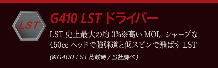 LST史上最大の約3%※高いMOI。シャープな450ccヘッドで強弾道と低スピンで飛ばすLST(※G400 LST比較時/当社調べ)