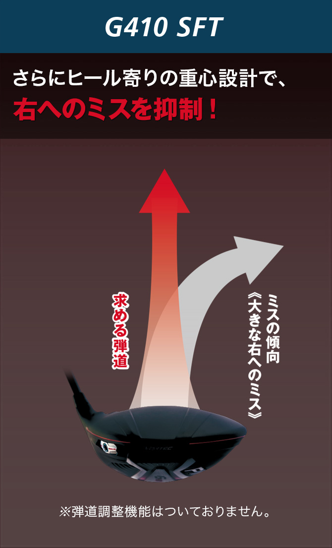 さらにヒール寄りの重心設計で最もつかまるSFT※弾道調整機能はついておりません。