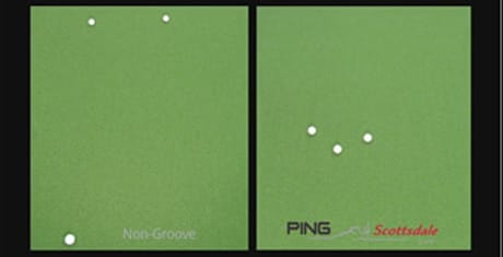 転がりの差は歴然。左が溝のないScottsdaleモデル、右がScottsdale TRモデル。コースでの3パットは距離感が合わないために起こる場合がほとんどです。 1mも2mもソッポに打つことはほとんどないが、1m・2mオーバー、ショートすることはよくあるはずです。