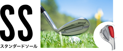 ロフトバリエーションが豊富で、様々なライからでも対応可能なSS(スタンダードソール)。1982年に発売された一番最初の"PING EYE 2"形状を再現し、バンカーから楽に脱出できるEYE 2(アイ2ソール)。トゥ側とソール中央部が幅広で寛容性に優れたWS(ワイドソール)。そして、シリーズの中では最もソール幅が狭くフェースの開閉に適したTS(シンソール)。